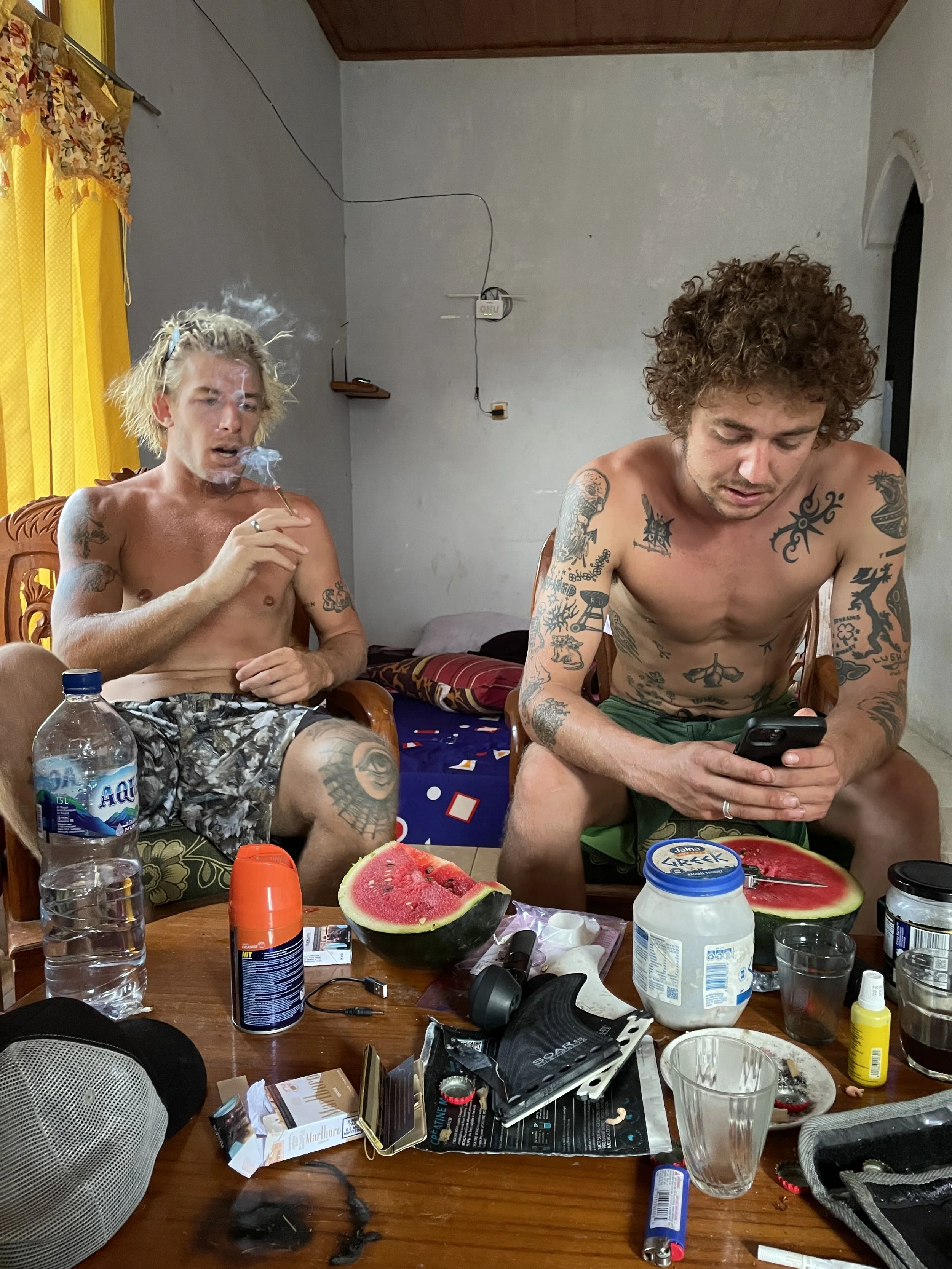 Yeah the whole middle section of the video was from a trip with with the rage crew to this random zone in Indo I had never been and didn’t really know what to expect but we kinda scored for the first 3 days of the trip then stuck around for like a week to wait for the next swell but ended up getting skunked haha. The wave is in the little fishing village with like a few shacks. It was pretty grim living situations. Every morning the local fishermen would come in on their boats with tons of these little sharks that supposedly they sell their fins to china or something. We were staying at this local legends house who’s the only one that surfs around there. And we were just staying on little pads on the floor of his living room. Pretty much all we could find to eat was rice boiled eggs and mie goreng packets. Our shower was the hose outside and our toilet was one of those classic Indo style toilets in the ground. We still had an absolute blast but by the end of the trip everyone kinda started getting sick and the waves never got good so we were out of there.